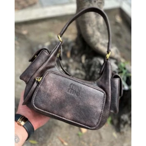 Women’s Miu Miu Pocket Logo-Embossed Coffee Shoulder Bag
