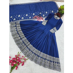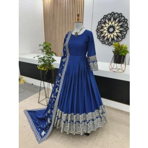 Women's Designer Party Wear Look Full Heavy Embroidery Gown With Fully Stiched and Dupatta
