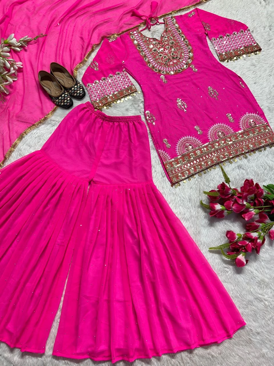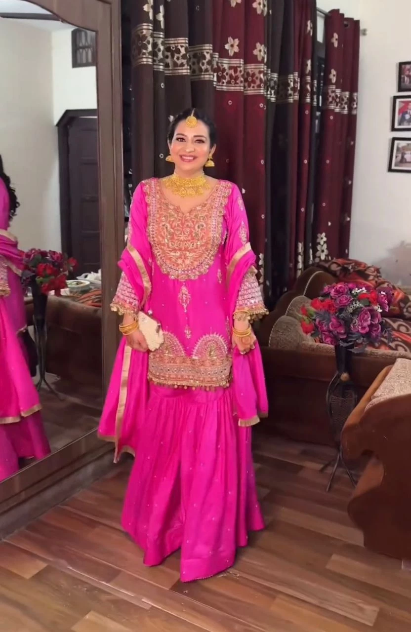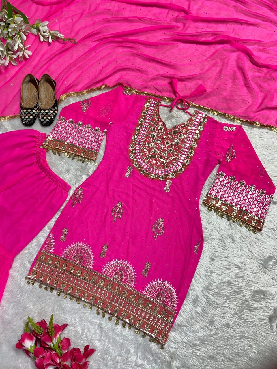 Top Fabric :- Heavy Faux Georgette With Heavy 5mm Embroidery Sequence Work With Hand Work Diamond Work Full Sleeve With Latkan Dori