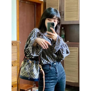 - Design: Featuring the iconic Tory Burch T monogram, this bucket bag boasts a sophisticated yet contemporary look. Its sleek silhouette and classic design make it a versatile addition to any wardrobe.