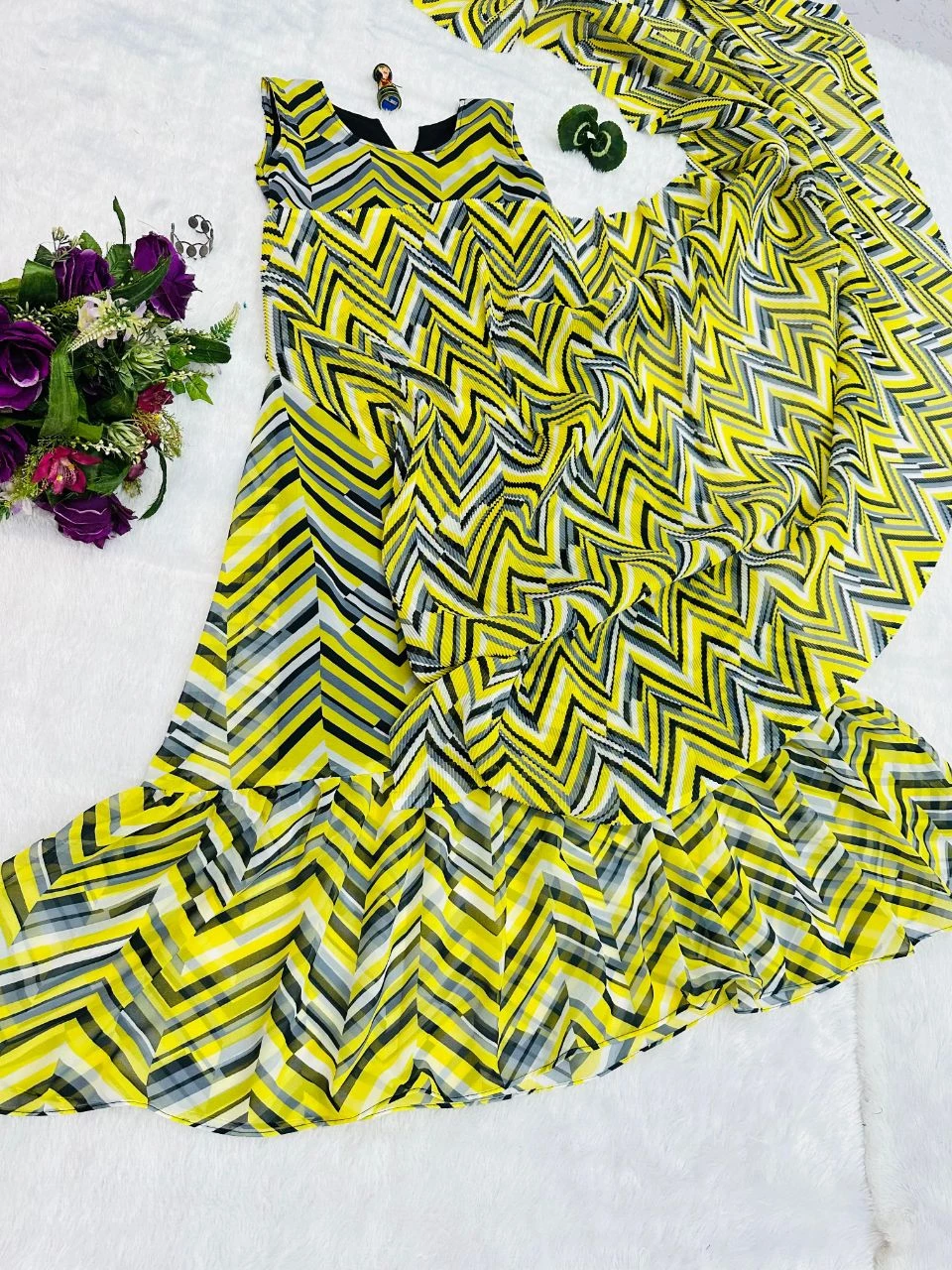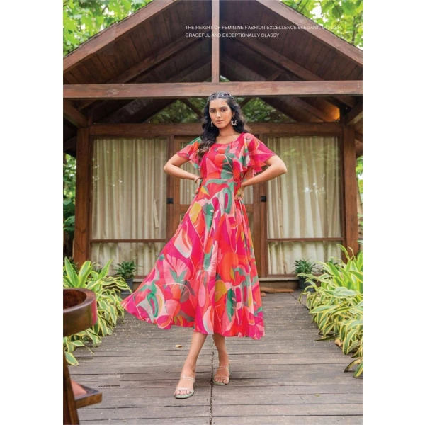 WE ARE LAUNCHING NEW SUPERHIT TRENDING FAUX GEORGETTE FABRIC WITH DIGITAL PRINT FULL FLAIR STITCHED GOWN WITH CRUSH FABRIC DUPATTA.