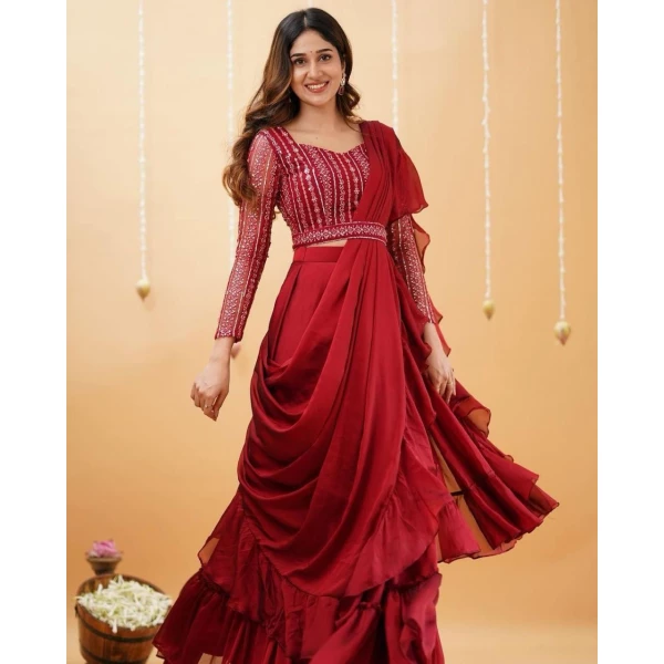 Women’s Trending Faux Georgette Gown With Crush Fabric