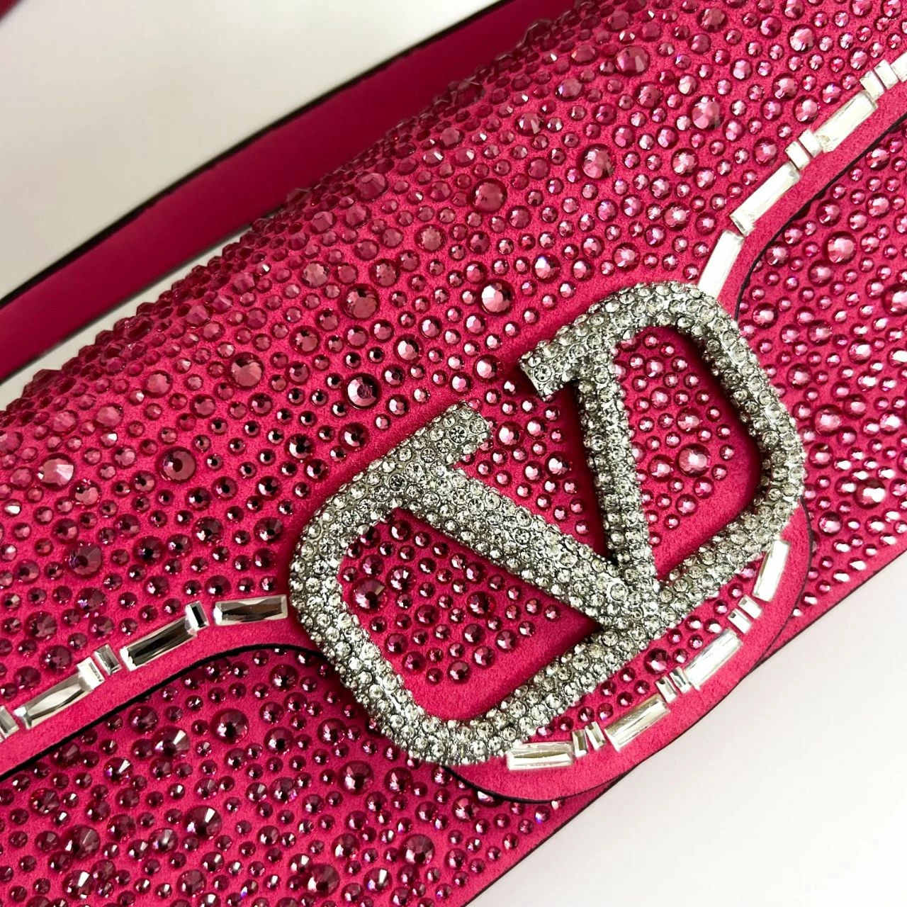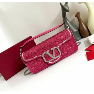 Valentino Garavani Loco shoulder bag with rhinestone applique and rhinestone-covered VLogo Signature element.Inspired by 90s styles, this Locò bag is presented in a small version and embellished with all-over rhinestones. Equipped with both a detachable sliding chain strap and a detachable handle, this accessory can be worn as a crossbody/shoulder bag or carried as a handbag.