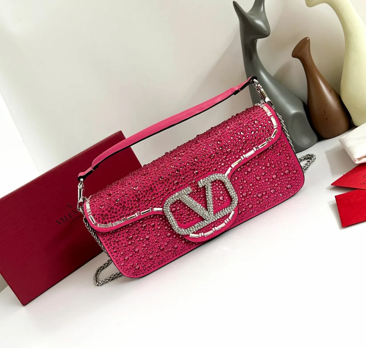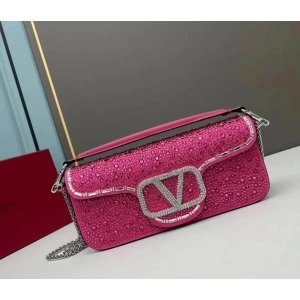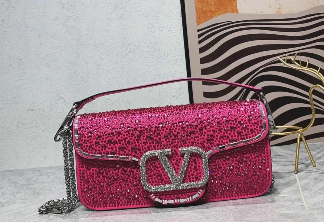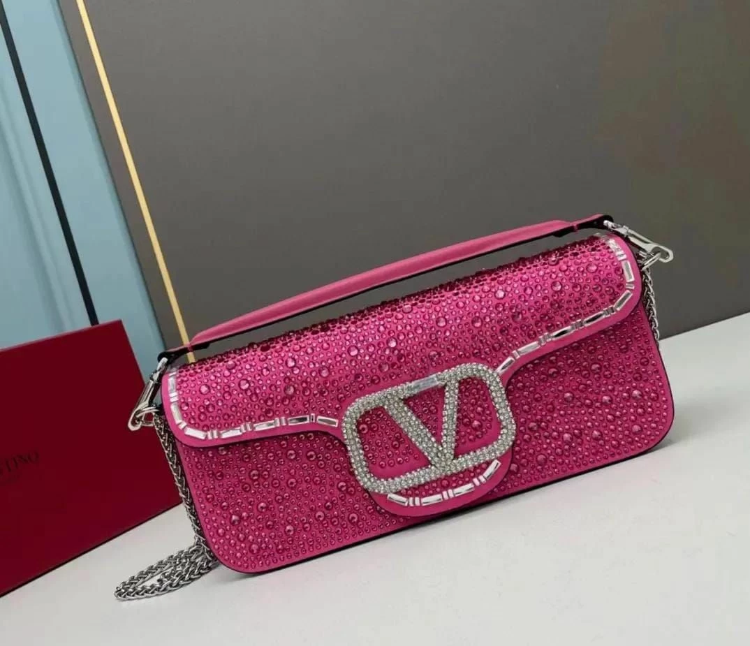 Women’s Valentino Garavani Loco Rhinestones Pink Top Handle Bag With Chain